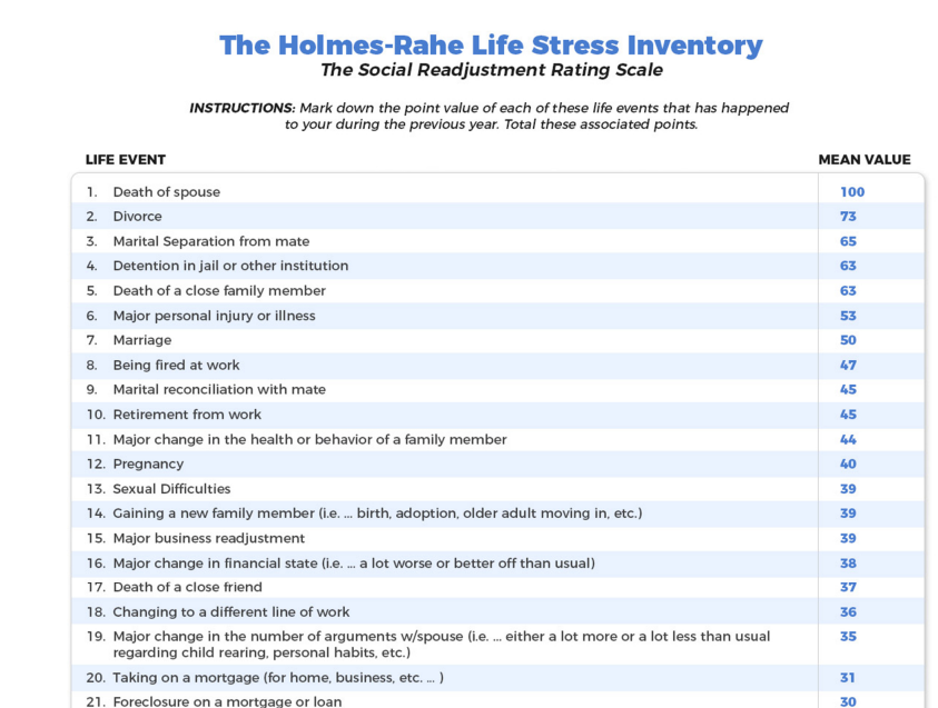Here is an image of what part of the Holmes-Rahe Life Stress Inventory looks like: