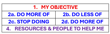 This Six-Box Action Plan™ format below has accelerated the development of people across all industries sectors and with people at every level of responsibility, from individual performers to C-level executives. It is perfect for self-development, with or without a coach. The Six-Box Action Plan™ is the tool, I’ll provide you with the methodology, and you’ll add the commitment and follow-through.